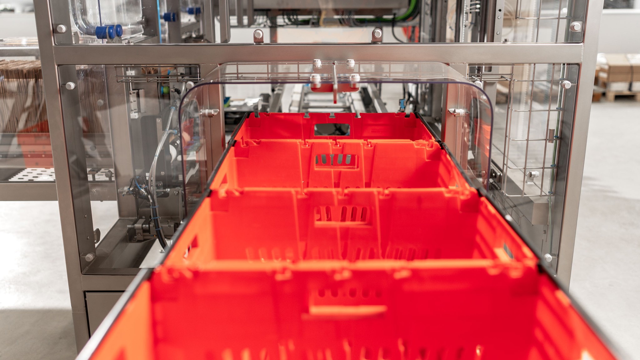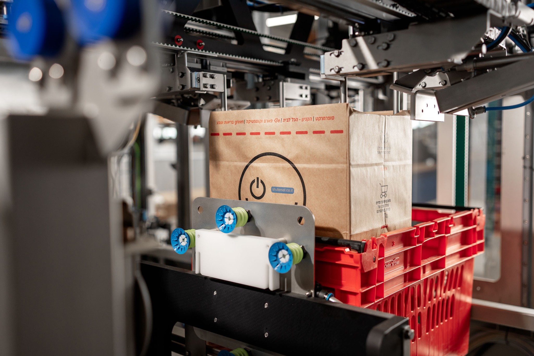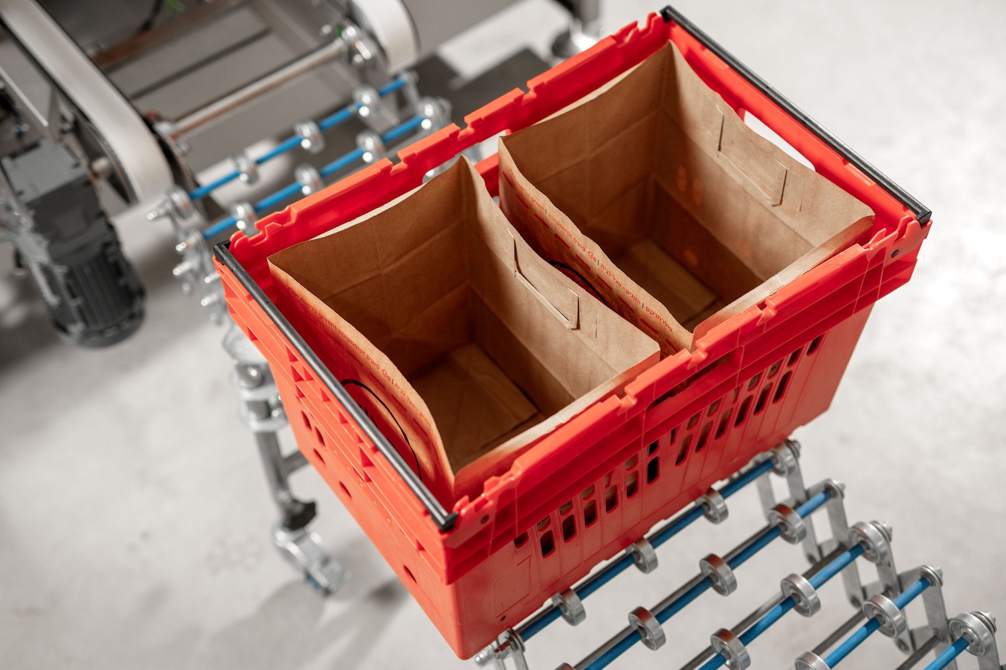 Your crates, totes or boxes are fed into the first line of the PaperBagger