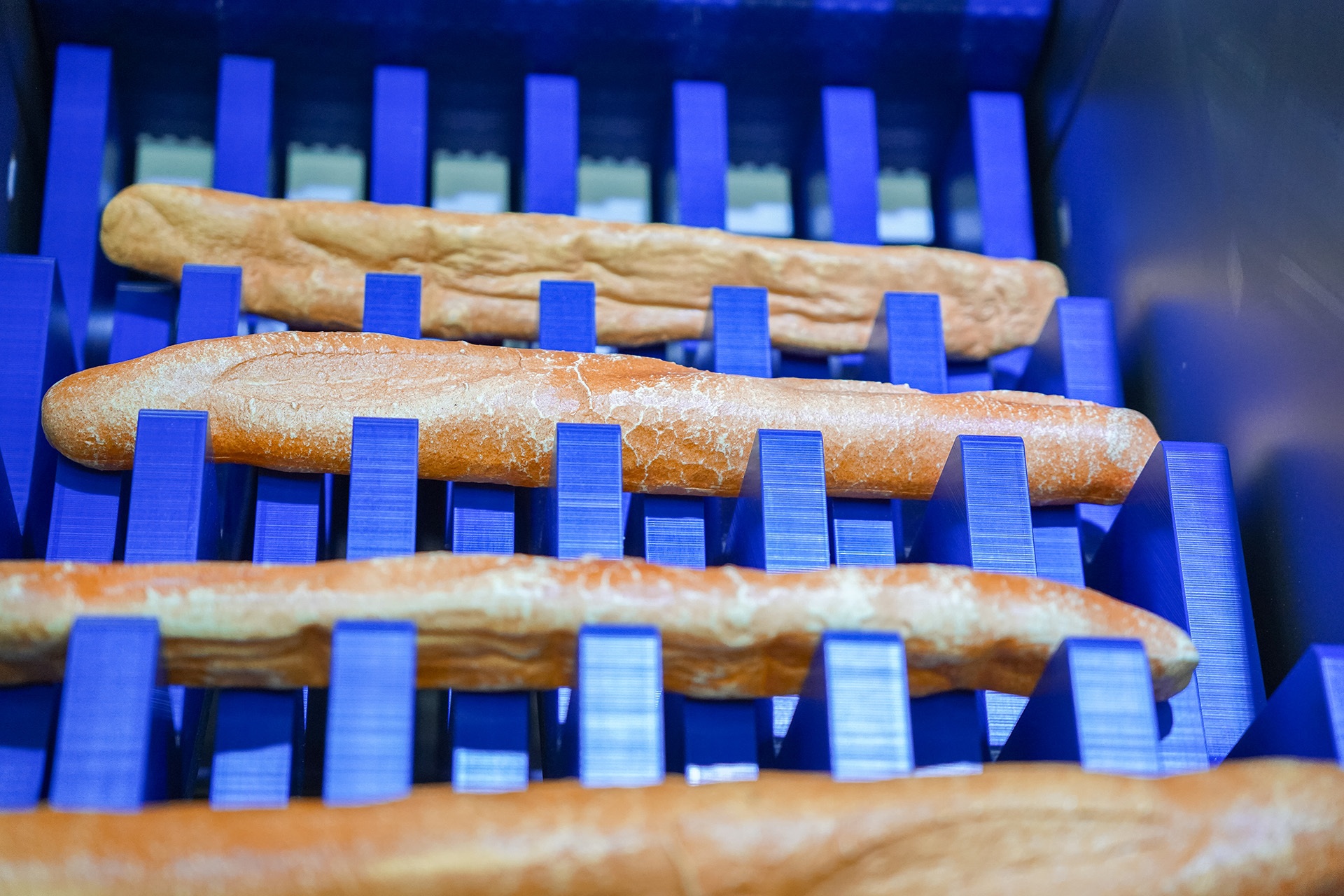 The Stairway is a budget-friendly counting machine, specifically designed to efficiently separate, count and pack baguettes or other elongated products. Thanks to the simple yet effective sawtooth motion and an accurate photocell, each product is perfectly separated and tumbled into the box. This machine offers reliable performance for small to medium quantities.